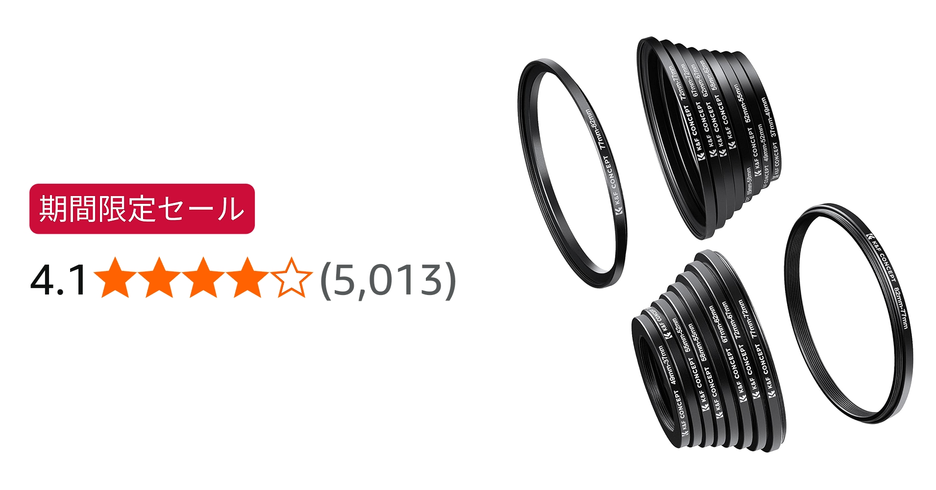 セール: K&F CONCEPT ステップアップリング+ステップダウンリング 18枚セット 37-49mm 49-52mm 52-55mm 55-58mm 58-62mm 62-67mm 67-72mm 72-77mm 77-82mm 9枚 49-37mm 52-49mm 58-55mm 55-52mm 62-58mm 67-62mm 72-67mm 77-72mm 82-77mm 9枚