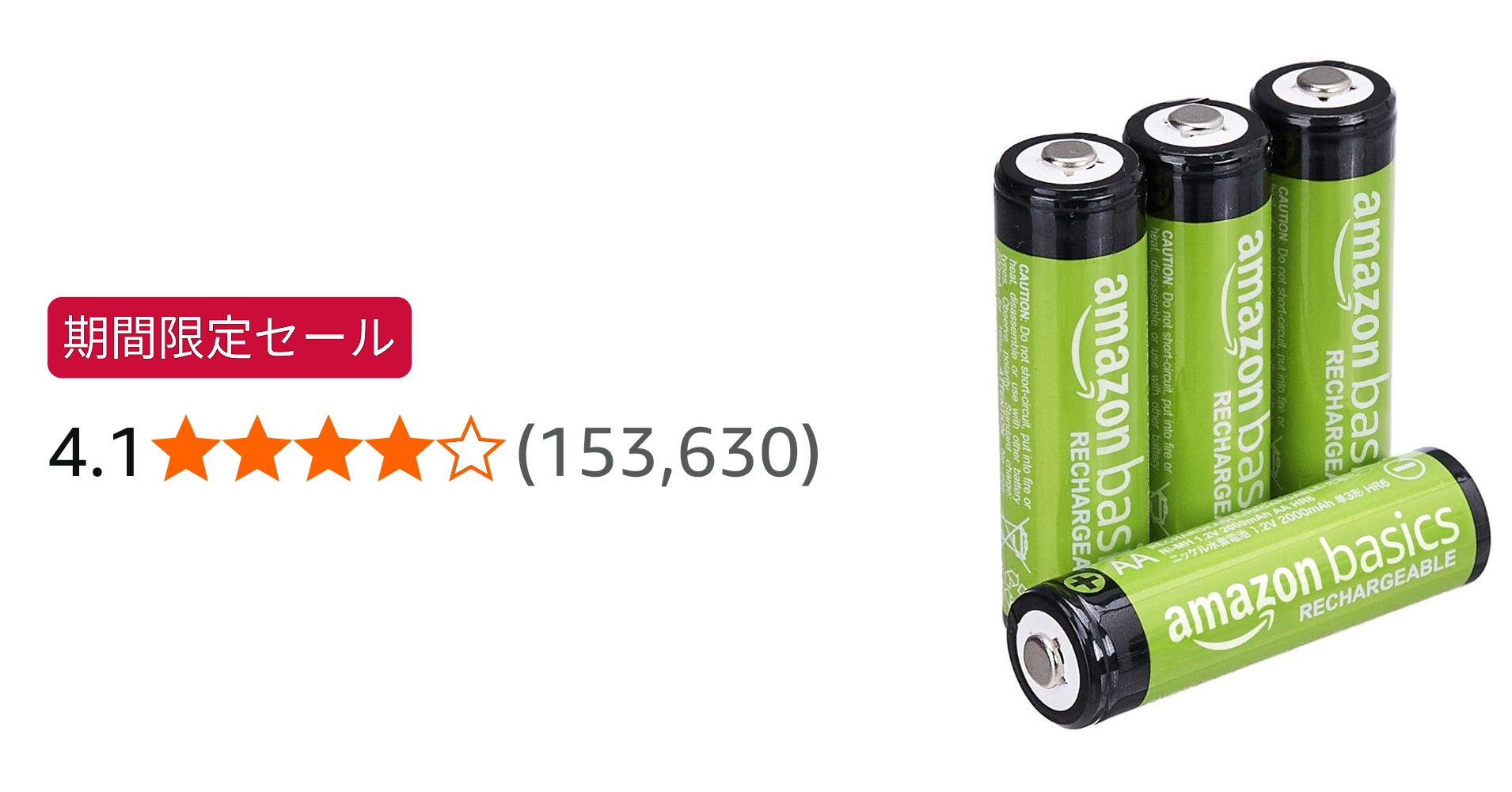 セール: Amazonベーシック 充電池 単3形 ニッケル水素電池 4本 大容量バッテリー 2000mAh 1.2V くり返し最大500回 充電済