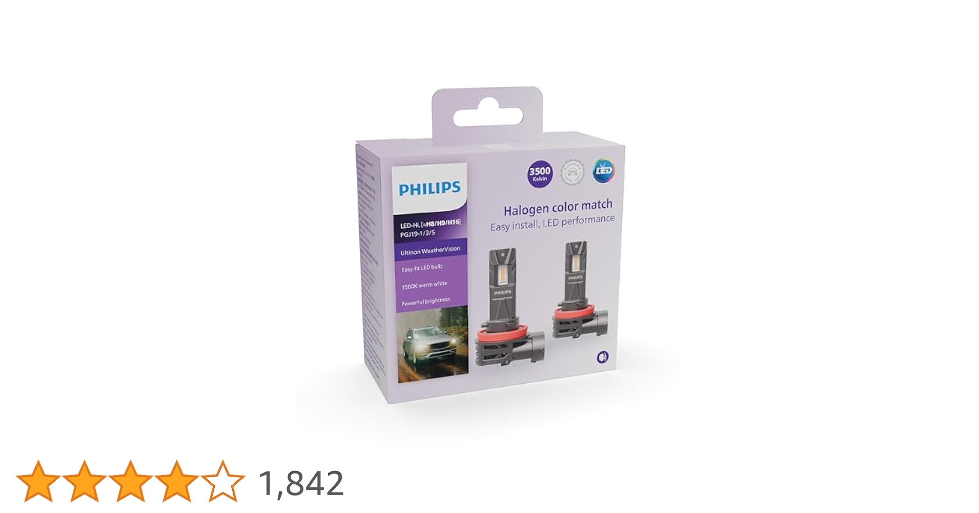 フィリップス H8 H9 H16 LEDフォグランプ 【新車検・ロービーム車検対応 2年保証付き】 3500K 電球色 自動車用バルブ ハロゲンバルブ同等サイズ 取付簡単 PHILIPS 11366U2510X2 2個入