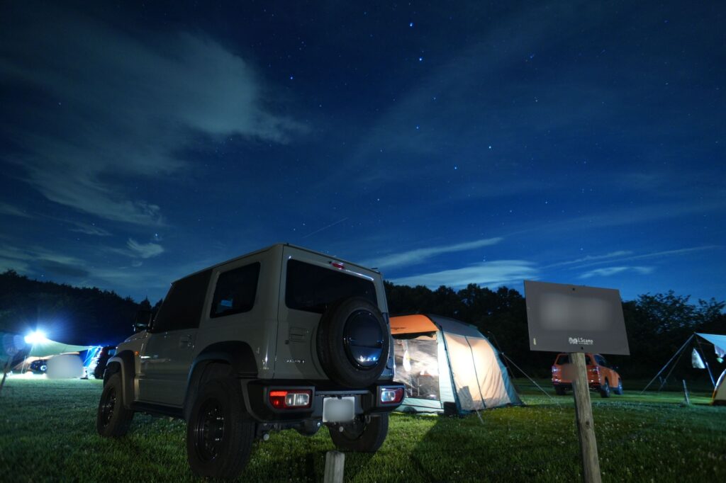 今回は車ごとキャンプ場に乗り入れる”芝生オートサイト”を利用しました。トイレやシャワーまでは150mくらい歩きましたが道中は夜中でも程よくライトに照らされているので幻想的でした。これならお子さんがもし夜中にトイレに行きたくなっても冒険的な楽しみを感じるかもしれません。