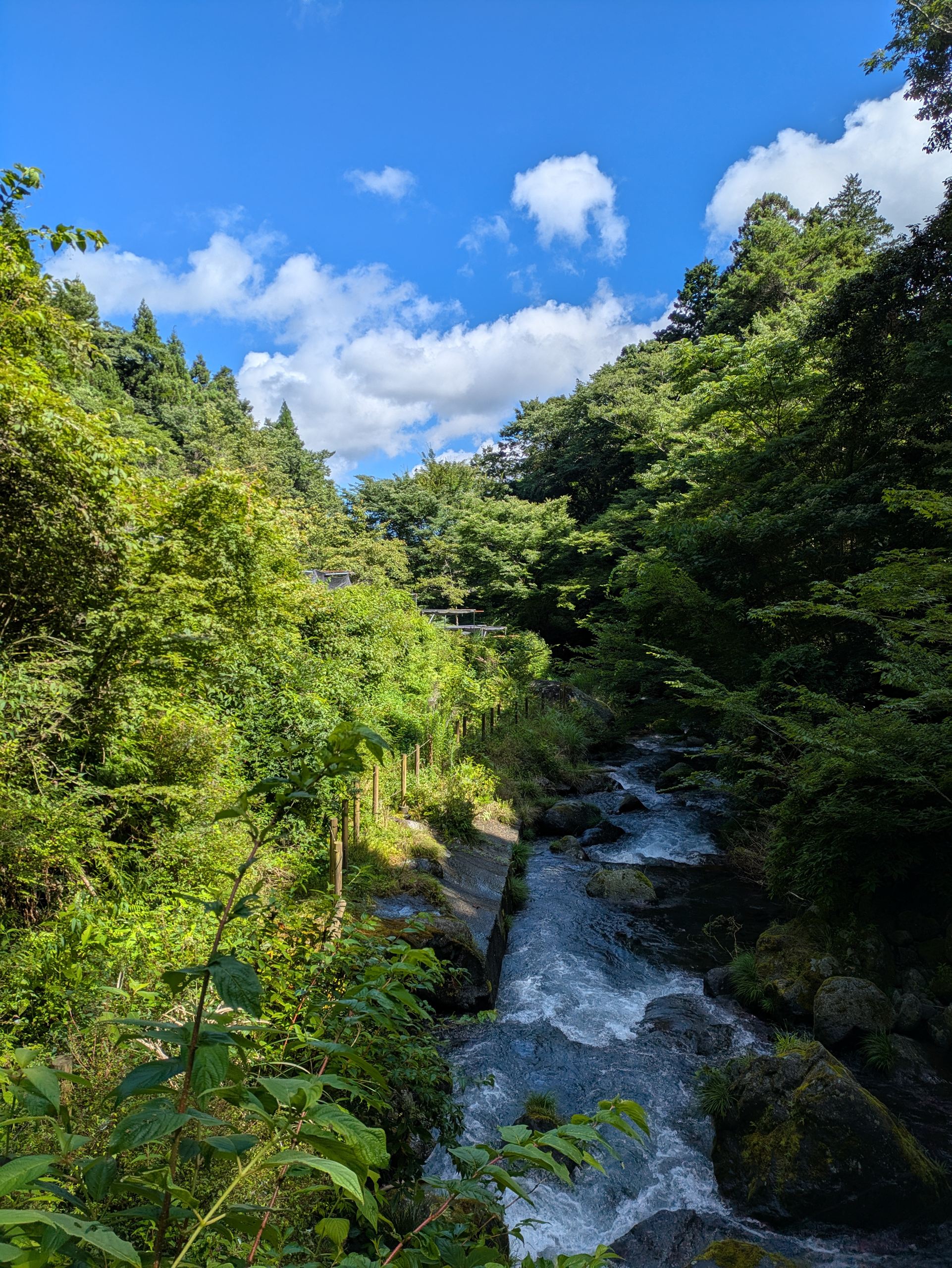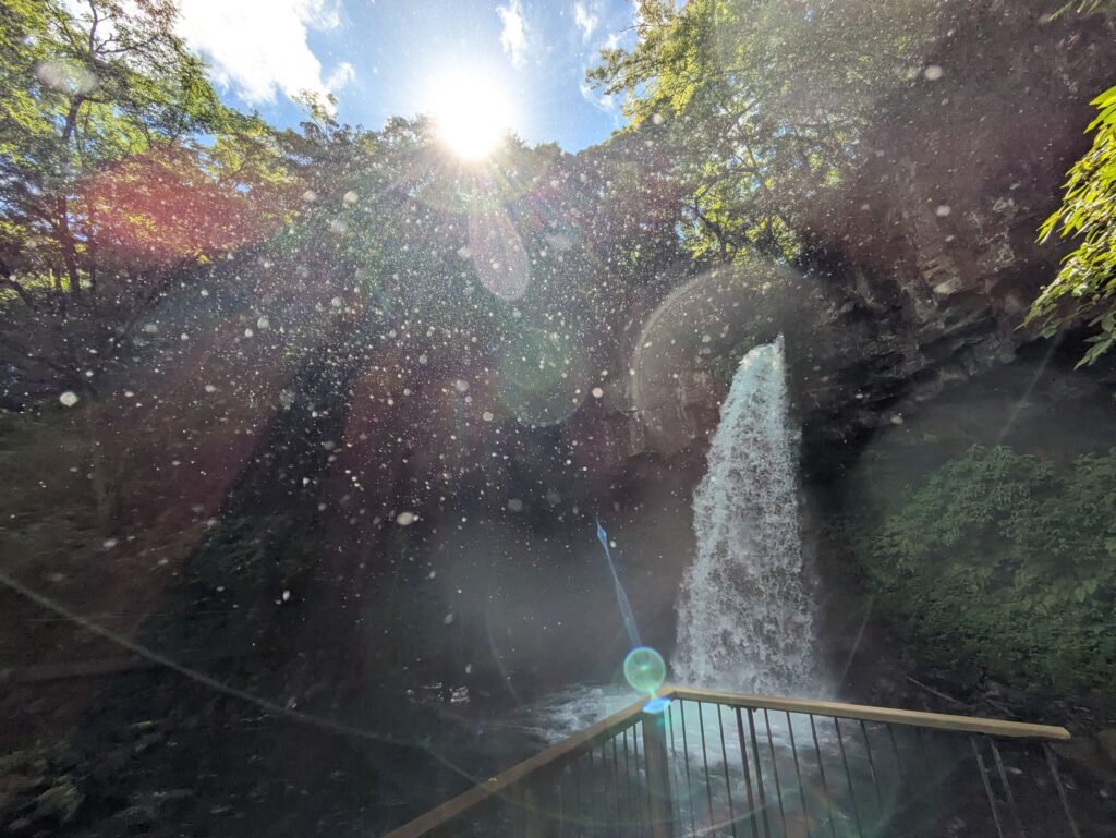 滝までは階段がありますが、途中からいきなり涼しくなって最高の気分でした。わさび田もあるくらい本当に水が綺麗な場所です。